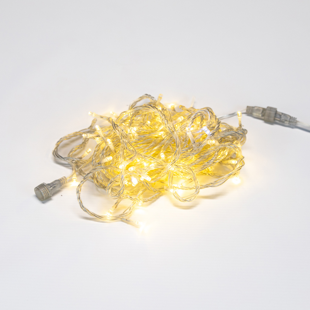 102053-3 - Cordão de 100LED Fixo Branco Quente - Led 5mm - Fio 1.8mm