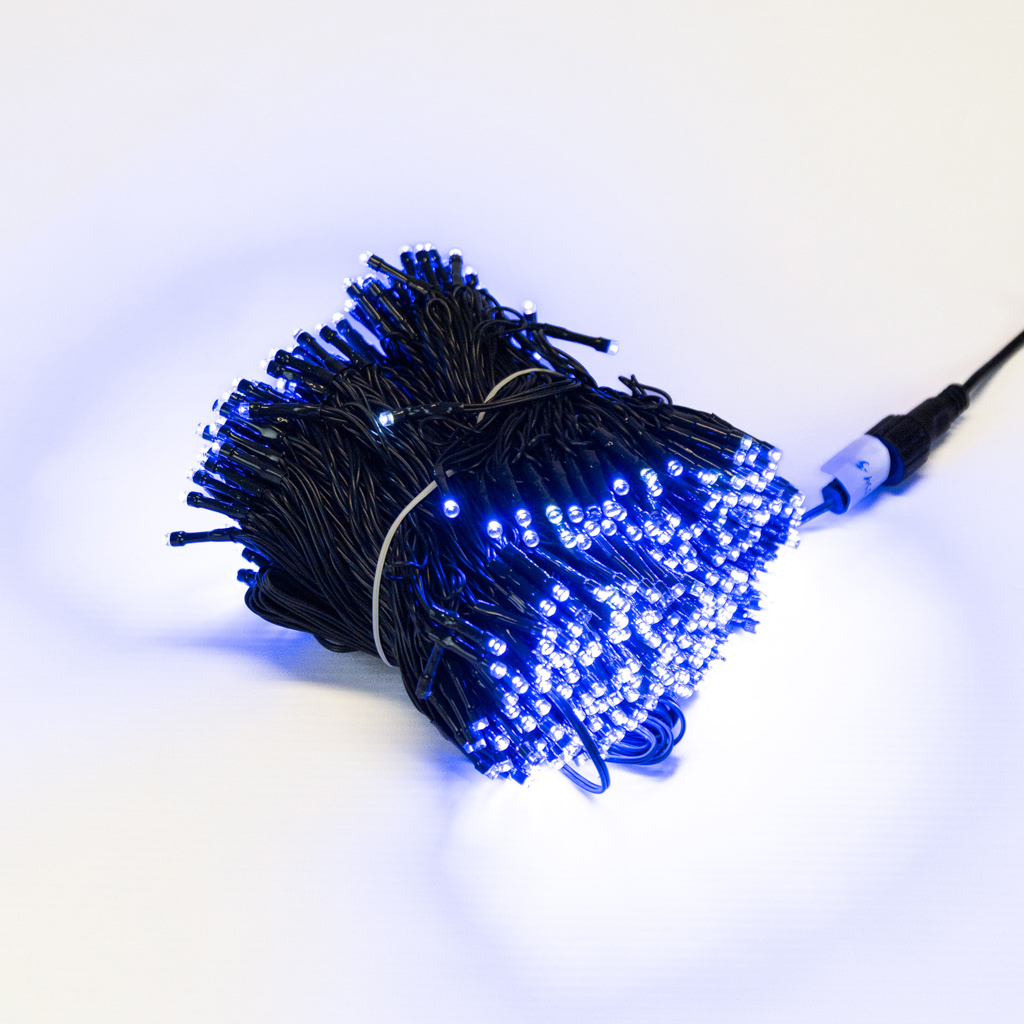 Cordão 500 Led com Pisca/Strobo sendo composto por (400 Led Fixo Roxo + 100 Led Pisca/Strobo Branco Frio = 4x1) 10W, Caixa com 12 Cordões com Conectores/Plugue, 31v, Led 5mm - FIO 1.8mm de Espessura por 50m Metros de Comprimento