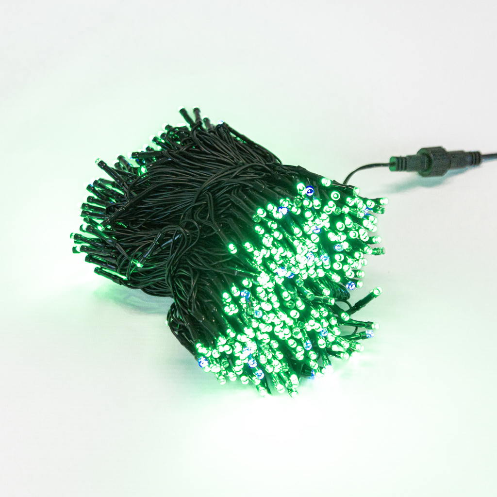 Cordão 500 Led com Pisca/Strobo sendo composto por (400 Led Fixo Verde + 100 Led Pisca/Strobo Branco Frio = 4x1) 10W, Caixa com 12 Cordões com Conectores/Plugue, 31v, Led 5mm - FIO 1.8mm de Espessura por 50m Metros de Comprimento