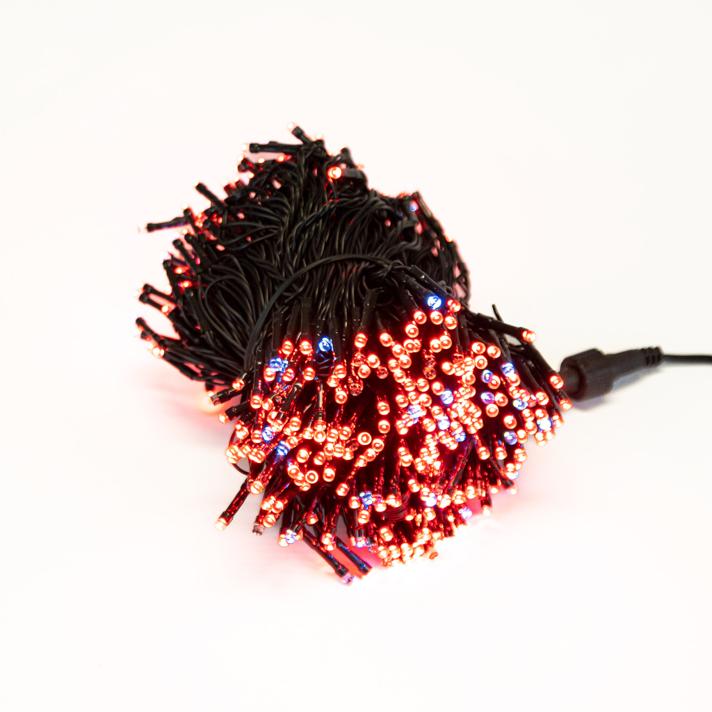 Cordão 500 Led com Pisca/Strobo sendo composto por (400 Led Fixo Vermelho + 100 Led Pisca/Strobo Branco Frio = 4x1) 10W, Caixa com 12 Cordões com Conectores/Plugue, 31v, Led 5mm - FIO 1.8mm de Espessura por 50m Metros de Comprimento