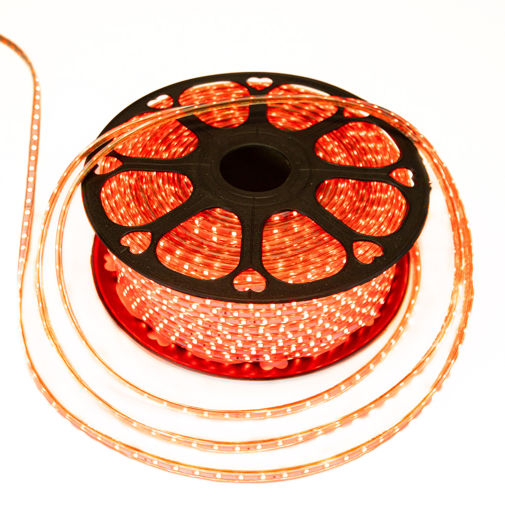 Mangueira Chata SMD - Fixo Vermelho 12mm x 7mm Milímetros de Espessura por 100 Metros de Comprimento Prova D`Agua - Led fixo 60Led/14W por Metro, Caixa contem 01 Rolo, 04 Rabichos/Plugue, 02 Emendas, 04 Pontas Silicone, corte a cada metro (Tamanho da Caixa 31x31x11cm - Peso 6kg)