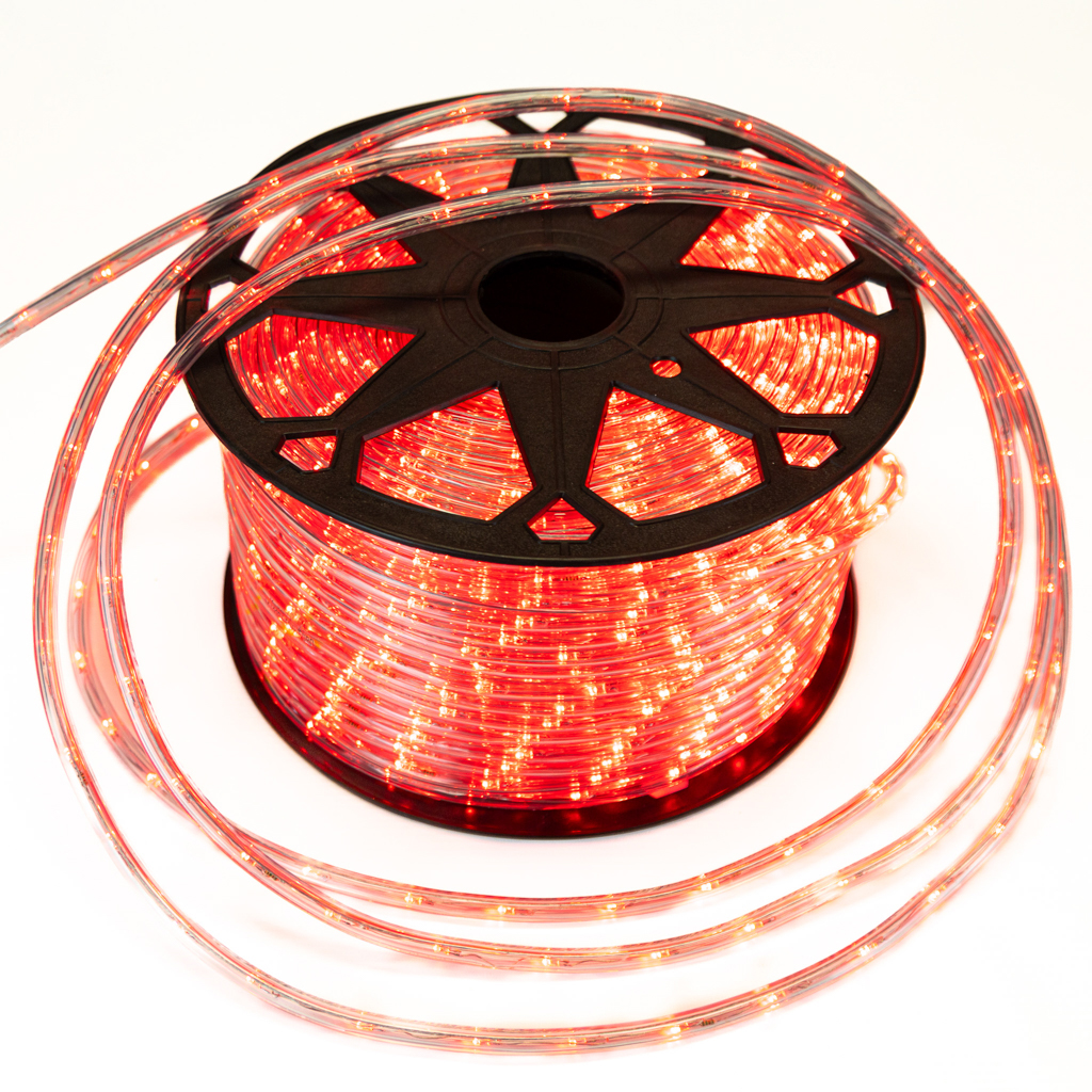 Mangueira Led Redonda Cor Vermelho 10,5mm Milímetros de Espessura por 100 Metros de Comprimento Prova D`Agua - Led fixo 24Led/3W por Metro, Caixa contem 01 Rolo, 04 Rabichos/Plug, 02 Emendas, 04 Pontas de Silicone, corte a cada metro (Tamanho da Caixa 32x32x17,5cm - Peso 9,5kg)